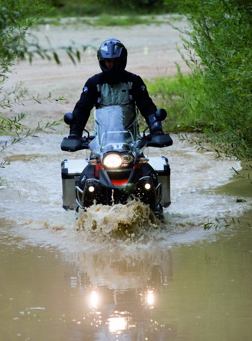 Преимущества «профессионального туриста» проявились именно на разбитой дороге. Знаете, говорят, что все мотоциклы, машины, телевизоры и т. д. одинаковые. А разница в деталях. Так и здесь: то, что даёт Adventure в те моменты, когда GS в бессилии складывает до упора и «телелевер», и «паралевер», стоит дорогого. Он позволяет ехать с непривычным для мотоцикла комфортом. У него не трясётся в конвульсиях стекло, руль не бьёт по рукам, грозясь вон в той огромной яме вырваться уже на свободу. В зеркала видно только то, что должно быть видно. Мягко и уверенно длинноходные подвески отрабатывают неровности, рычаг «телелевера» не даёт перьям вилки шансов на изгиб, для полного релакса на бездорожье не хватает лишь 21-дюймового колеса, которое, кстати, с этого сезона доступно по каталогу Wunderlich.