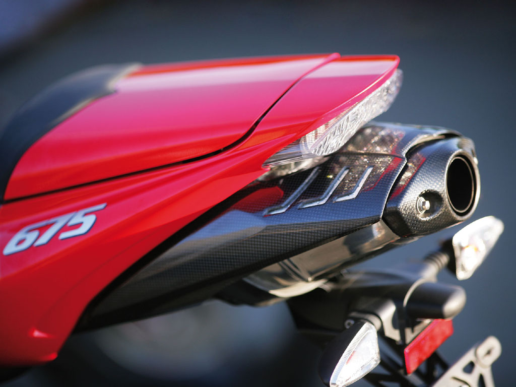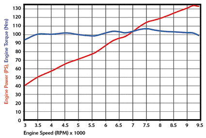 Максимальная мощность машины составляет 128 лошадиных сил при 12600 оборотах, а крутящий момент - 73 Нм при 11750 об./мин., что ставит британский мотоцикл в один ряд с японскими конкурентами.15.02.2009