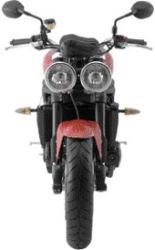 Но этот недостаток с лихвой компенсирует ломовой двигатель, который выйдет из любой трудной ситуации, демонстрируя невероятную тягу на средних и даже низких оборотах, и такой же убедительный, хотя и не сравнимый с 4-х цилиндровыми «рядниками» спурт: в общем, там, где с другими «шестисотками» необходимо четко рассчитывать свои действия, Triumph выходит из поворотов яростно, без колебаний и задержек.