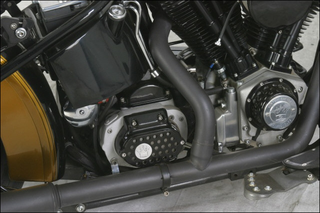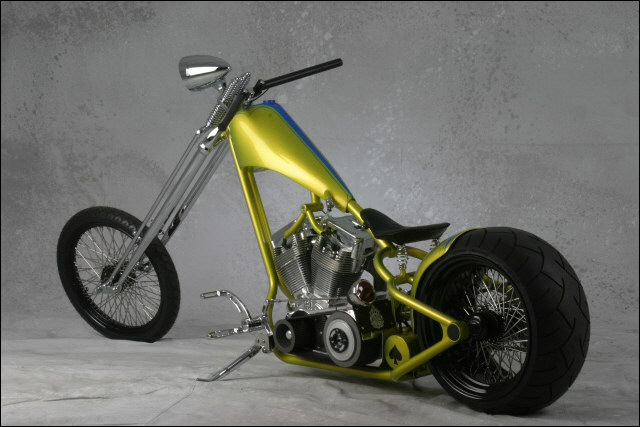 BBC Springer, BBC pipes, BBC controls, BBC foot clutch, BBC shifter, BBC bars, Cadillac head ornament and BBC PAB sheet metal