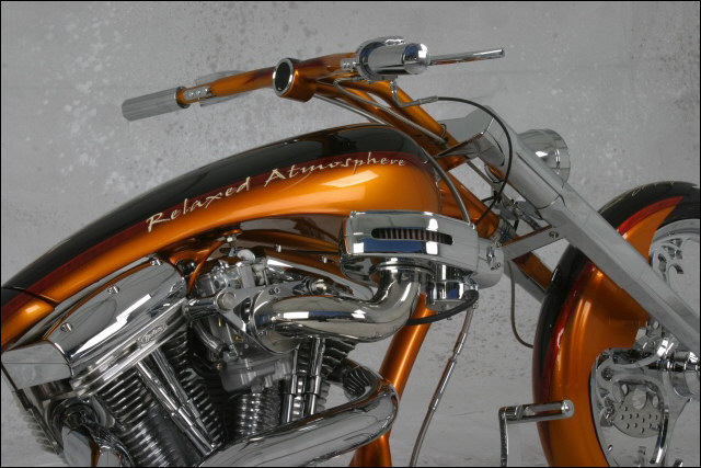 Фред припарковал свой здоровенный Dodge REM (большая редкость для практичной Германии) и, приветливо поздоровавшись, предложил совершить экскурсию по мастерским. Большая комната, с десятком подъёмников - место, где собирались все его шедевры. Сейчас в работе несколько кит-байков, ещё пара мотоциклов ждут своей очереди на получение широкого колеса и прочих, ставших уже классическими, опций. В следующей комнате целая линия по производству рам. Это одно из основных направлений фабрики, приносящее неплохой доход. Малярный цех оборудован по высшему разряду, здесь есть всё, чтобы создавать действительно уникальные вещи. В следующем зале в углу стоят несколько станков с ЧПУ, здесь из металлических болванок вытачиваются разнообразные аксессуары. Ещё несколько подъёмников с мотоциклами.