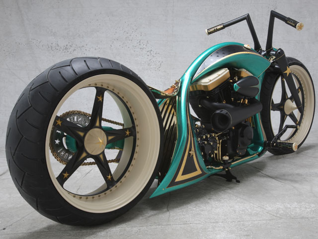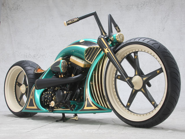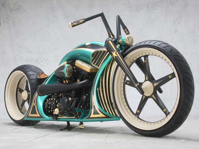 Серебряный призер чемпионата мира 2008 года Кейдзи Кавакита. Его StG Nautilus оснащен 1524-кубовым мотором S&S и 5-ступенчатой коробкой передач Baker. Рама - риджид с 27-градусным рейком. Но самое главное здесь - проработка деталей и отделка. В этом японцы сильны как никто другой А что за название такое странное для мотоцикла - «Штурмовая винтовка Наутилус»? Бред какой-то. Позже оказалось, что так и есть: по словам Кейдзи, образ байка навеян танками времен первой мировой, военными кораблями и подводной лодкой капитана Немо. A StG - это действительно Sturmgewehr, «штурмовая винтовка» по-немецки, в честь знаменитой StG44, которую Кавакита сильно уважает. А еще, если вы разбираетесь в оружии, можете заметить пущенный поверх бака «Наутилуса» элемент, выполненный в стиле немецкого пулемета MG42. Вот это замес!