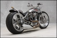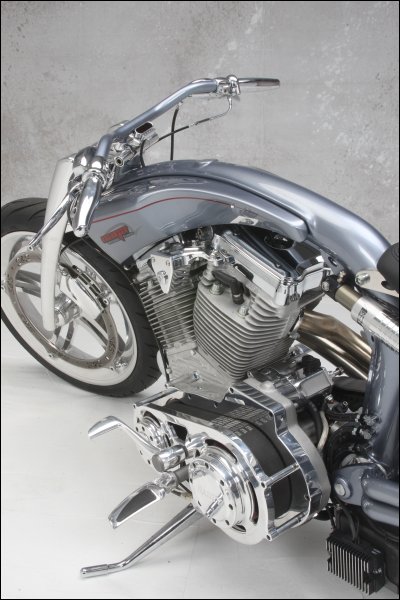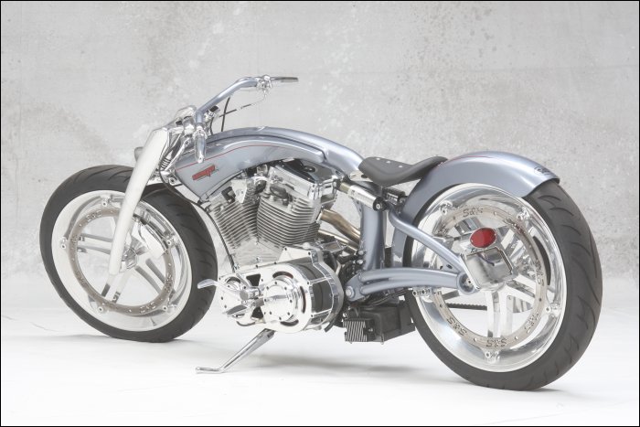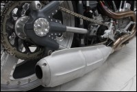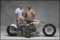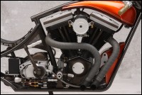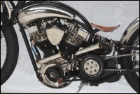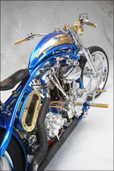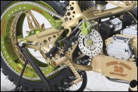 На этот раз Роджер обскакал конкурентов на самом настоящем гоночном аппарате. Его Goldmember оснащен 1-цилиндровым мотором - «ПОЛОВИНКОЙ» харлеевского V-твина (впервые Голдэммер использовал подобный двигатель на Trouble, с которым он выиграл чемпионат 2005 года), а в придачу компрессором и «нитросом». Этот аппарат - обладатель рекорда скорости в своем классе: в конце прошлого года он промчался по дну высохшего соляного озера Бонневиль со скоростью 265 км/ч.