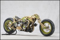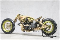 На золотую матовую поверхность рамы, бензобака и колёс он нанёс элементы аэрографии под цвет элоксированых комплектующих мотоцикла. «Покрышки колес можно очень быстро заменить на нормальные», - говорит Тобиас, но следующая зима наверняка придёт, и она точно не застанет ребят врасплох…