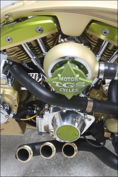 Двигатель S&S 93 кубических дюймов не претерпел изменений, но его мощность была сильно увеличена турбиной Aerocharger.