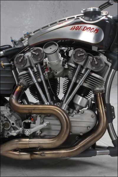 intercooled, nitrous oxide injected single cylinder Harley-based engine,