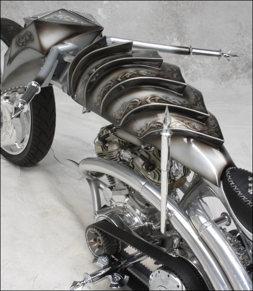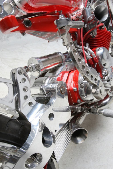Главной гордостью Ларри-механика является возможность менять в мотоцикле рэйк в диапазоне от 25 до 38, а так же высоту седла и дорожный просвет. Всё это осуществляется регулировками чудо-рамы и, по заверению самого мастера, осуществляется самыми незначительными усилиями.