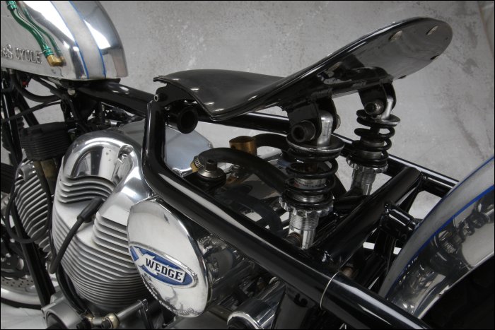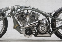 Взяв за основу двигатель от Norton-а 1976 года, один из самых красивых моторов за всю историю мотоциклов, Ларри наклонил его под углом в сорок градусов и установил вместе с четырёхступенчатой коробкой передач в собранную из шести отдельных частей раму, которую спроектировал ещё прежде, сидя в мастерской долгими дождливыми английскими вечерами. За счёт наклона двигателя мотоцикл получился более низким и эффект огромных колёс был достигнут малыми силами – всего-то на всего 23-дюймовое сзади и 21-дюймовое спереди.