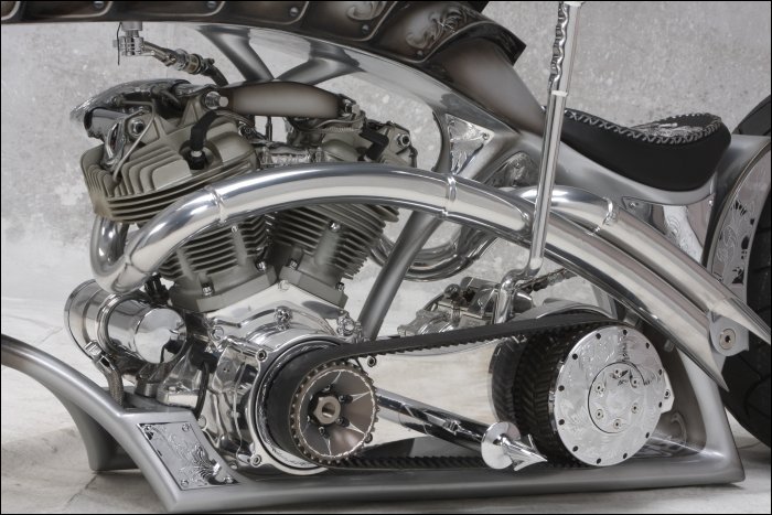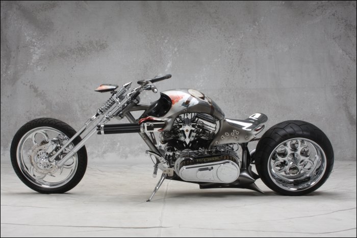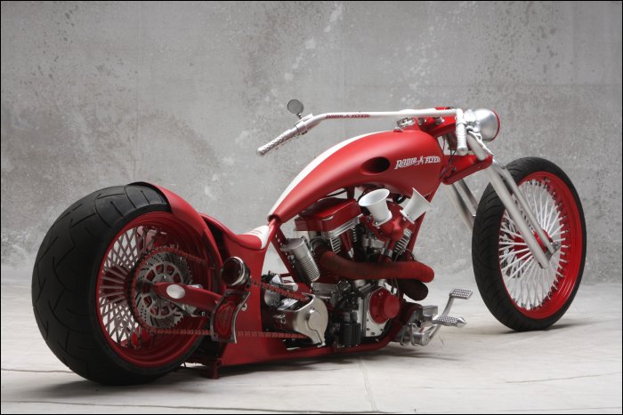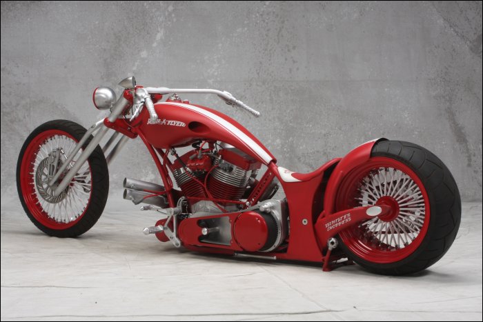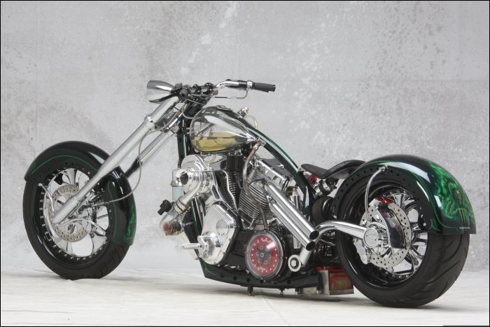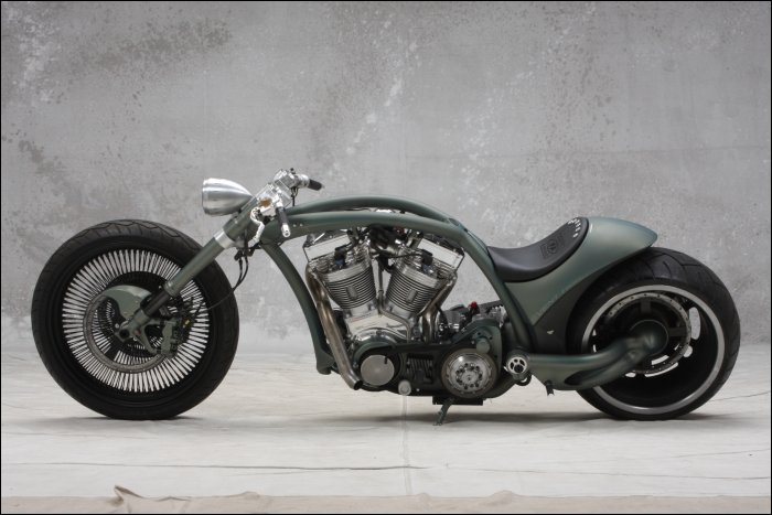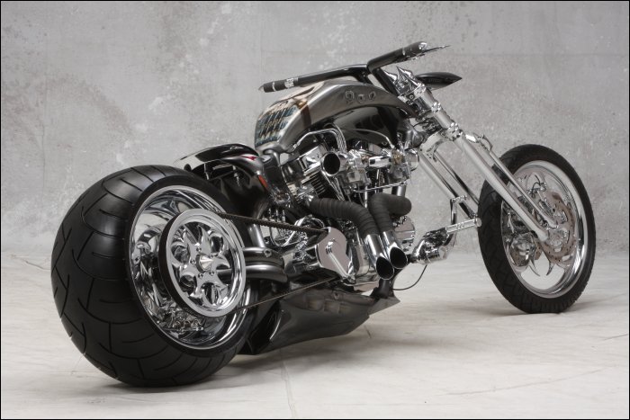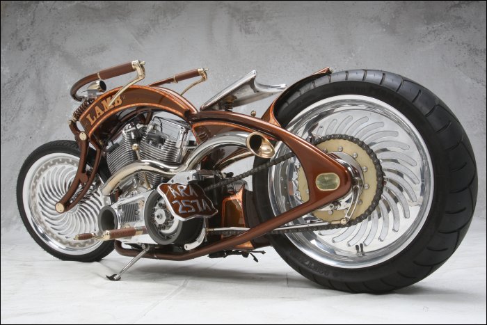 Pipes by Chopperdave. Wheels are one-off prototypes for this bike.