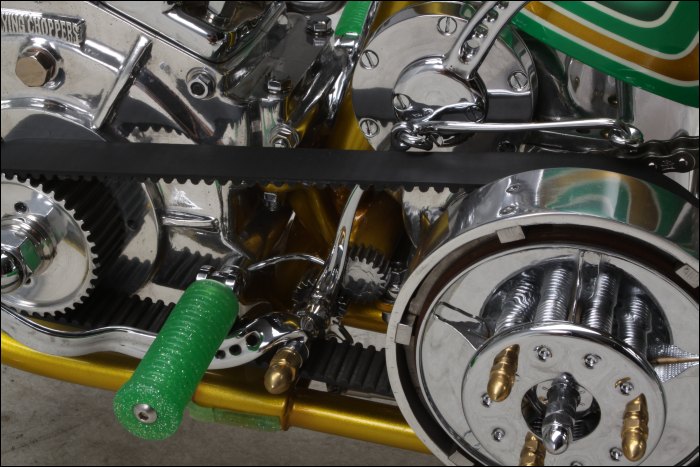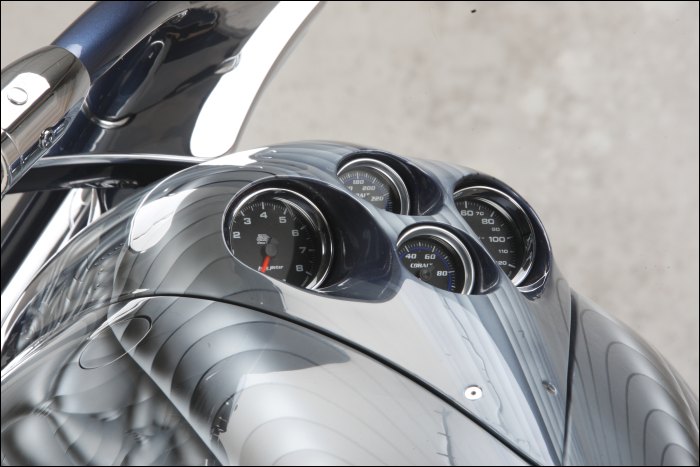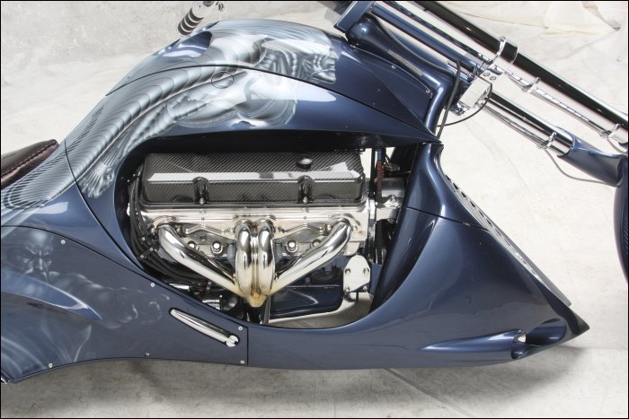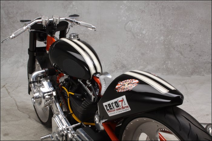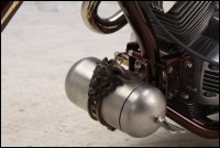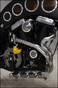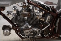 Кроме авиационного двигателя австралийской компании Rotec, кастом снабжен шестиступенчатой коробкой передач RevTech, вилкой Goldammer, баком от Twisted Choppers, колесами Ride Wright, шинами Metzeler и тормозами Perfomance Machine.