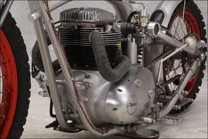 Engine oil is stored in the frame tubes, and filtered through a Westbury beehive oil filter.