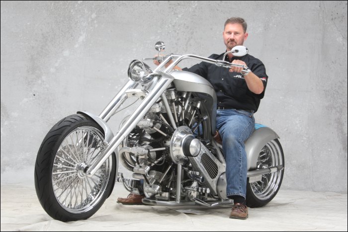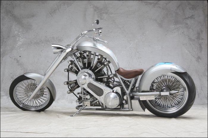 Джон Леви, шеф мастерской JRL Cycles, представляет свой JRL Radial Lucky 7 c 2,8-литровым радиальным семицилиндровым авиамотором австралийской компании Rotec. Кастом Lucky 7 разработали John Levey, Tim Deml, Chet Thomas и Pete Walker.
