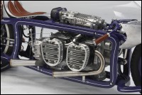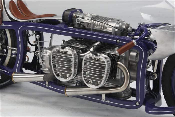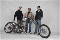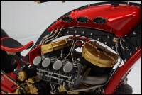 Выйгрышным было использование давно забытых в Европе, а уж точно абсолютно экзотических в Америке, моторов, да еще и два, прям как Несс. Несс в последний раз использовал эту тему в 2007 годе, а до того вспомните его «Неприкасаемых» или еще пару мотиков. Да и рама хоть и своя, но геометрия явно похожа. В свое время, Фред Кодлин был недоволен использованием Шифом своей рамы для «Аиста», купюра была слишком явная. Но Арлен Несс вряд ли что скажет, старикан сам не прочь подглядеть новые идеи. Вилочка опять же… Все-таки это скорее «Неприкасаемые -3″. Кстати, а что там у него (не у Юры естественно) с обтекателем и задницей? Не от Роджера ли ГолдАммера вот эти идеи?
