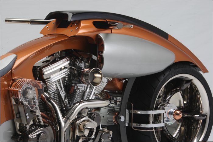 Пеер Тофнер заявляет, что этот мотоцикл - не что иное как концепт, готовый стать в основу как кастом проектов, так и серийного производства, а пока Фредди с удовольствием демонстрирует, как рэйк за секунды меняется на семь градусов и колёсная база увеличивается на 3 дюйма. Специально для таких трансформаций предусмотрена и вторая пара подножек, соответствующая новому «стилю» мотоцикла. Как всегда всю работу с металлом Крюгер выполнял самостоятельно в своей мастерской, взяв только на вооружение пару колёс RSD и тормоза Beringer. Конечно, идея и проект в этом мотоцикле заслуживают не меньшего уважения чем исполнение, конечно работа Ван Дер Кваака тоже сыграла значительную роль на пути к пьедисталу, но несомненно, что Крюгер заслужил право называться чемпионом, возможно не за один этот год, но уж за все так точно.