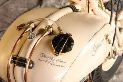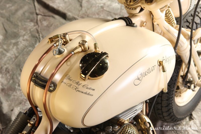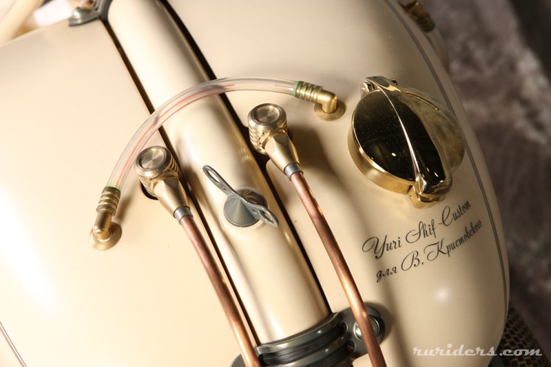 «Вопрос был принципиальным – взять русский мотор и сделать мотоцикл мирового уровня. Показать всем русским ребятам – не важно какой двигатель, главное не бздеть! Национальную идею, кстати, тоже никто не отменял», - так Юрий Шиф начал рассказ о своём «The Machine» (именно это слово-эмоция стало названием его последнего проекта). В отличие от большинства своих коллег, он начинал свой путь кастомайзера не с оппозитов и Яв, а с больших V-Twin-ов. Это вообще первая его встреча с отечественным мотором, что возможно и позволило Юрию настолько творчески подойти к проекту, не поддаваясь никаким предрассудкам. «Дань уважения энтузиастам и романтикам скорости всех поколений», - вот что такое по его словам этот новый проект.