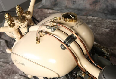 Байк был создан в ателье Yuri Shif Custom. В команде Юрия Шифа – порядка 15 профессионалов своего дела, которые создают оригинальные и ни на что не похожие байки. Бюро за свою историю выпустило уже достаточно много мотоциклов (почти 30), некоторые из которых уже нашли своих владельцев, а некоторые до сих пор продаются. Ряд работ ателье представлены в Москве в салоне American Chopper. Цены на байки Юрия Шифа достаточно кусачие – стартуют от 25 000 долларов.