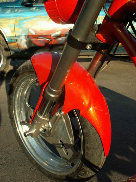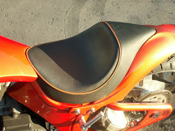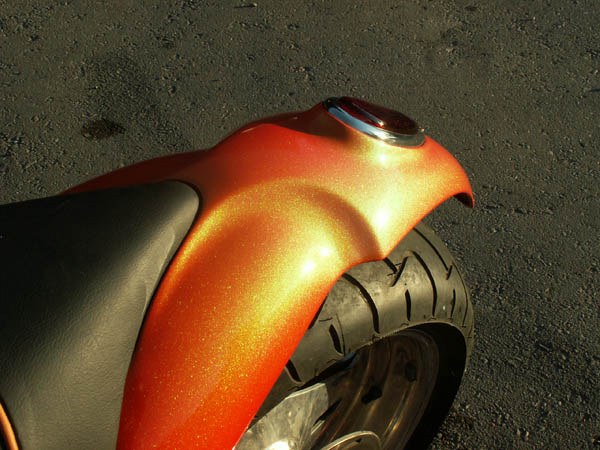 По заключению заказчика, мотоцикл требует к себе внимания, а что может его привлечь лучше чем карамельно-оранжевый цвет. Главное - принять решение, и вот уже скоро все детали свежеокрашенными лежали вряд, ослепляя невольных свидетелей почти солнечным светом. Не всем же ездить на брутальных чёрных драгстерах, должно быть и что-то радостное в мире байкеров! Мотоцикл был готов и стоял, красуясь, в центре мастерской. Выхлопные трубы были обмотаны свеженькими бинтами, алюминий отполирован, а новое сиденье с нетерпением ждало хозяина. Обкатка прошла без эксцессов, и совсем скоро счастливый владелец уже ехал на своём самом положительном и доброжелательном мотоцикле, оглушающем окрестности рёвом и изрыгающем из глушителей пламя.