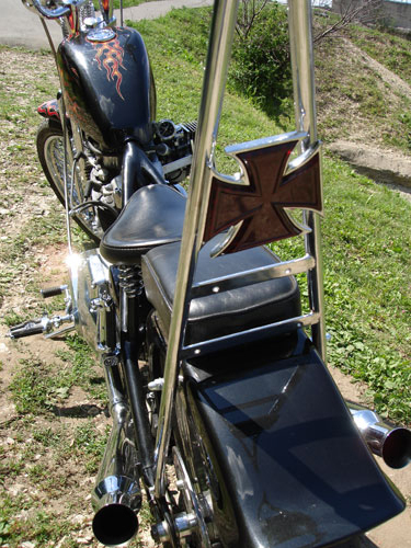 Наконец обретя владельца-ценителя Артёма Баранова, мотоцикл начал новую жизнь и попал в мастерскую в Орехово. Правда и Артём по началу колебался, думая сделать классический мотоцикл с глубокими крыльями и плавными обводами, но в итоге выбор пал в сторону ортодоксального чоппера. Соответственно всё должно быть по канонам: сухая рама, вилка-спрингер, высокая спинка, крыло "рыбка", глушитель "бутылка", спортстеровский бак с пламенем и куча мальтийских крестов.