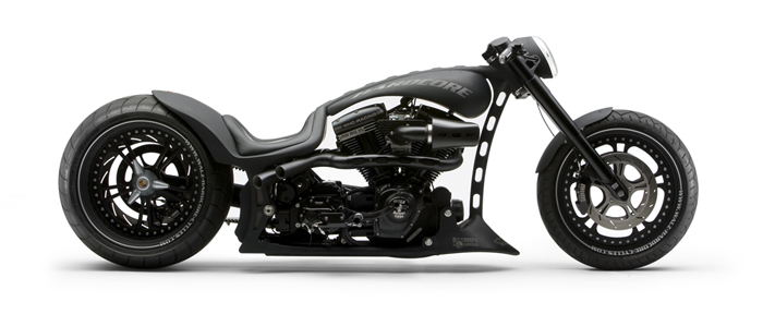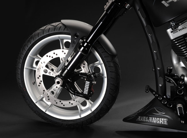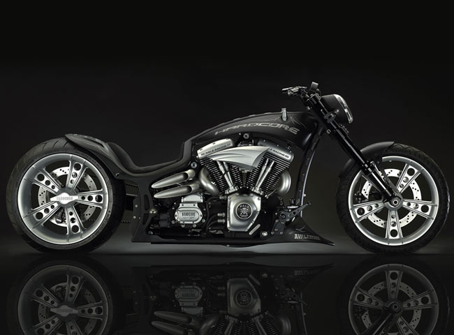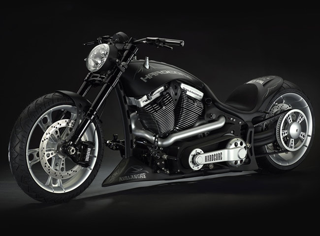 Рамки нашего обзора, к сожалению, не позволяют изучить весь его послужной список. Кому интересно, то вэлкам на официальный сайт Hardcore Cycles. Нынешним поводом обращения к творчеству Маркуса стал анонс его последнего проекта Avalanche. По сути, это мотоцикл, который соединил в себе все интересные наработки ателье Маркуса. Этот аппарат в каждой детали и узле демонстрирует, каким должен быть настоящий кастомизированный мотоцикл. Но главное отличие проекта от ему подобных (хотя похожих весьма мало) в том, что этот мускул-байк еще и отлично управляется. Не хуже любого серийного мотоцикла, а в чем-то даже и лучше. Рекламный слоган, демонстрирующий концепцию всех разработок ателье Hardcore Cycles – Form Follows Function – реализован в этом мотоцикле полностью.