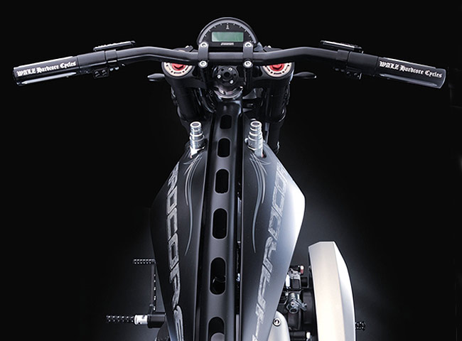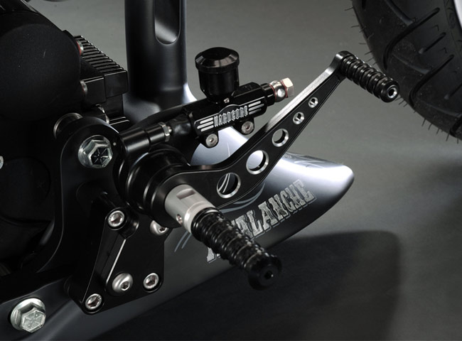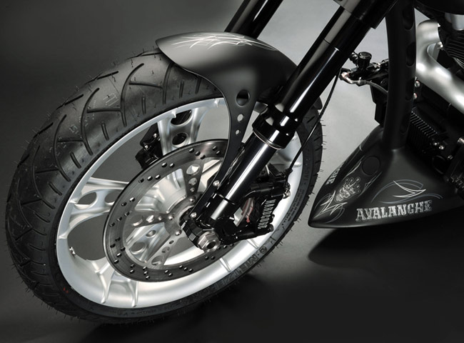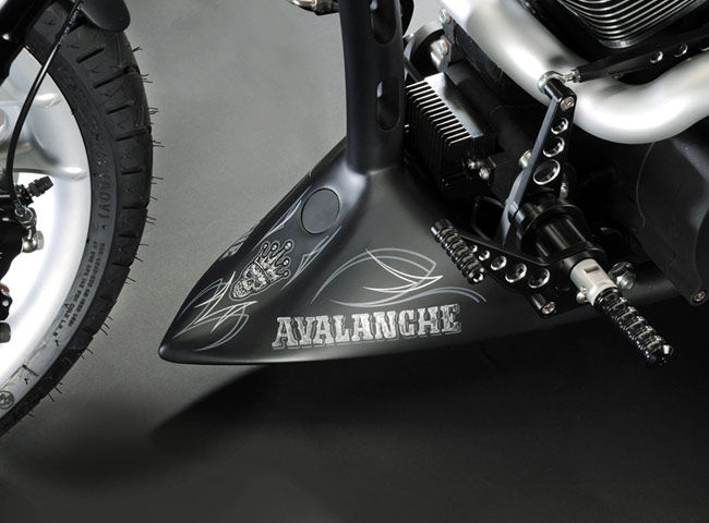 Дизайн выпускных патрубков взят из проекта компании TuNero 2007 года. И несмотря на то, что кажется, будто горячие выхлопные газы 2поджарят» бедро пилота, но такого на самом деле не происходит. Маркус рассчитал раструбы до мелочей. В целости своих «окорочков» будьте уверены! Рулевое управление – сам руль, ручки и рычаги – одни из самых продаваемых продуктов компании Маркуса. Естественно на Avalanche установлен этот стандартный кит.