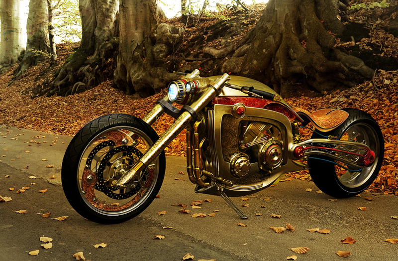 Майкл Люгнегард (Mikael Lugnegard) – малоизвестная личность в кастомайзинге. Этому шведу всего 31 год, и он художник и дизайнер по образованию. До 2005 года он больше работал виртуально – то бишь наполнял сеть скетчами и рисунками диковинных авто и мотоциклов. Но потом решил заняться реальным проектированием и создал мастерскую Lugnegard Design. Этот удивительный байк Seraphim, что на фото, продукт этой мастерской. Удивителен он не только формами и конструкцией, но и тем фактом, что многие детали на нем золотые и с утонченной гравировкой. Вот и пойми этих кастомайзеров…