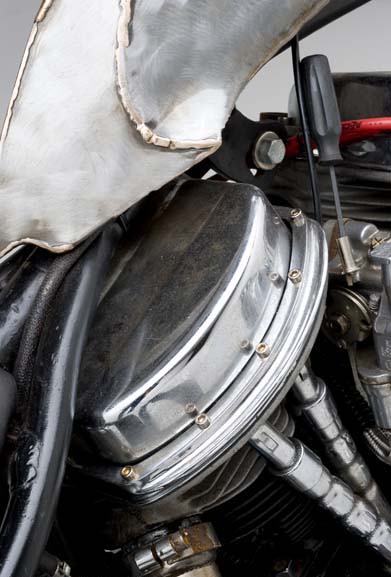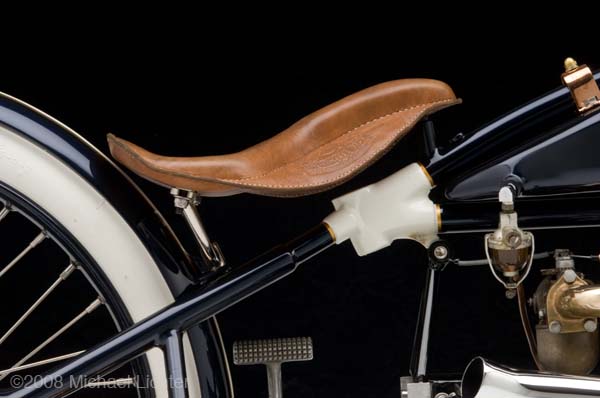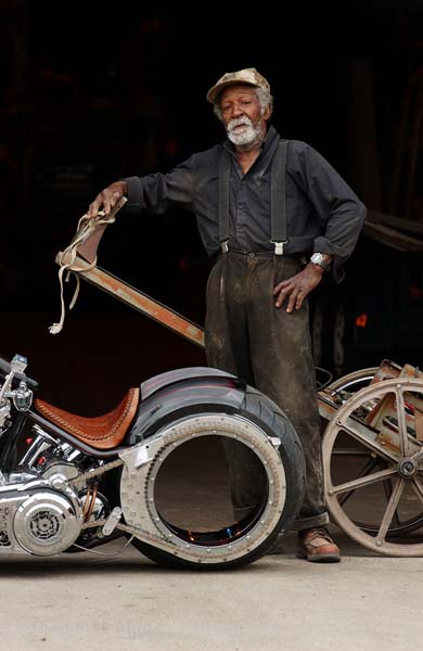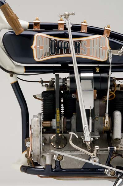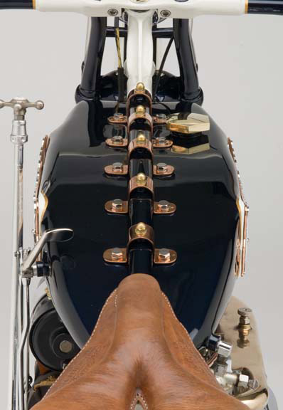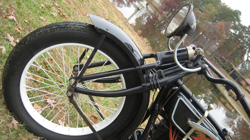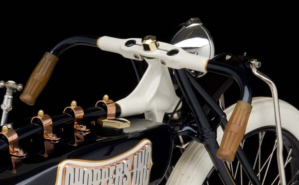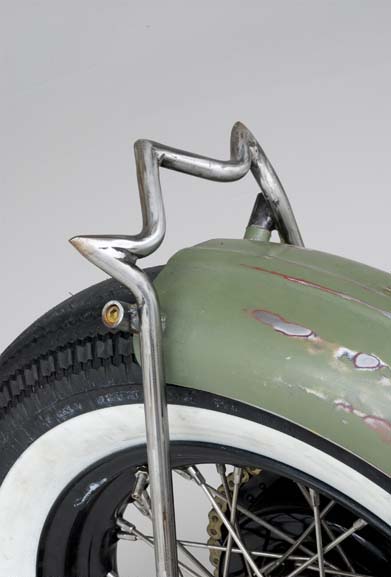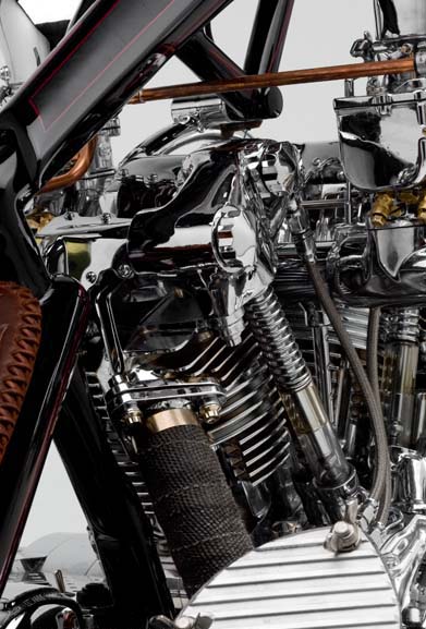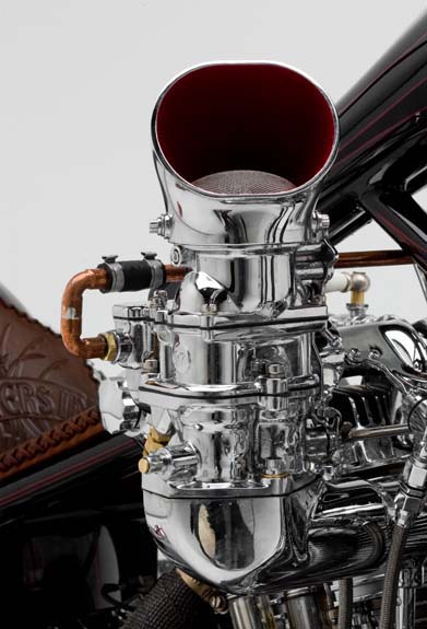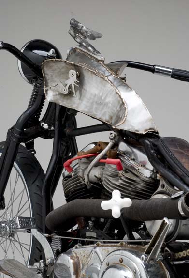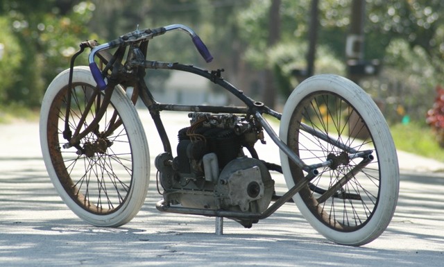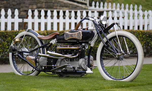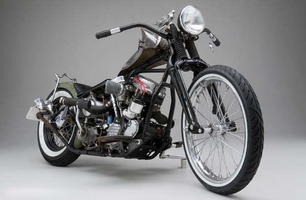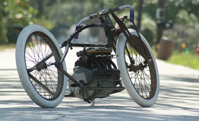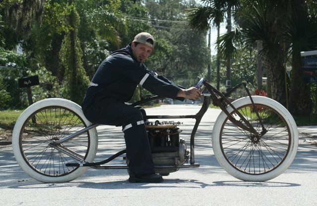 «К двигателю Detroit Henderson G 1000 1917 я приспособил раму Harley-Davidson 1929 года и 4-скоростную трансмиссию BMW R55 1969 с карданом Yamaha Virago, хотя пришлось изрядно повозиться, чтобы настроить их вместе. Перед мотоцикла взят у Indian 1919.