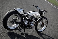 Этот мотоцикл был построен за 90 дней. В течение этого времени один из гениальных Европейских кастомазйеров Bertrand “Fred” Krugger создал такое, что выглядит действительно свежо и индивидуально по сравнению со многими другими представленными на этом шоу мотоциклами. Построенный для гонок Bonneville Speed, мотоцикл оснащен двигателем Buell, который обеспечивает хорошую мощность. Интересная вилка, восхитительная работа с металлом, необычная выхлопная система... Да, здесь очень много деталей заслуживающих внимания в этом произведении гоночного искусства.