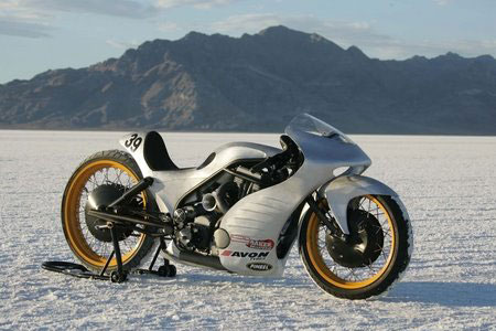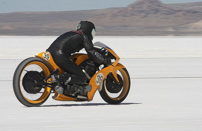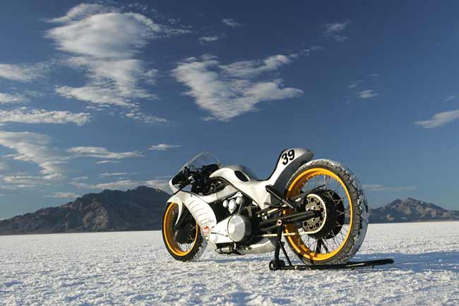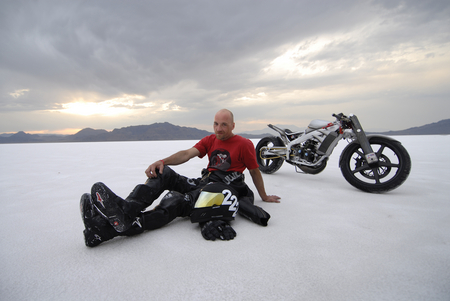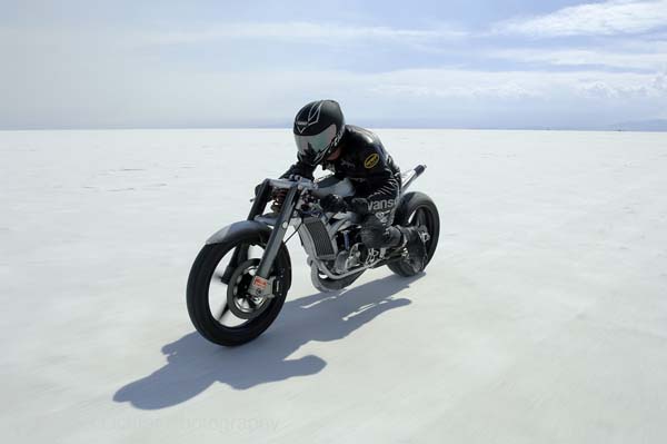 "Then where are they?" The doubtful spectator was now bordering on incredulous. His friend was not helped in his argument by the fact that he couldn't locate the turn signals either. The duo consisted of middle-aged cruiser guys - and not the weekend dress-up crowd, either. They were weatherworn riders, with leathery, reddened skin, having burned up to the Bonneville Salt Flats on a September weekday to take in the racing during the International Motorcycle Speed Trials. But now they were embroiled in an unforeseen dispute in the pits over the existence of some alleged taillights.