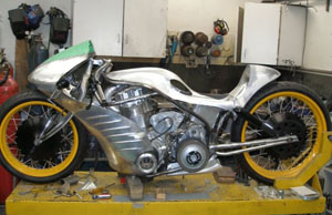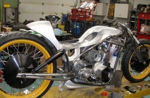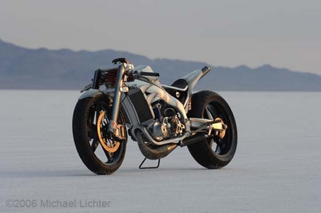 We ran into Roger Goldammer's "Trouble" when the board-track inspired design was on display at last year's Bonneville Speed Trials. The British Columbia builder was at the event participating in Discovery Channel's Biker Build-Off with a different machine.