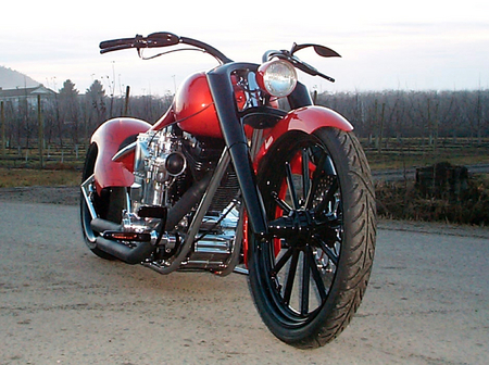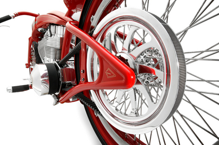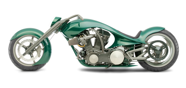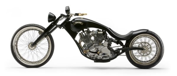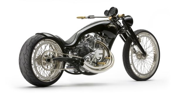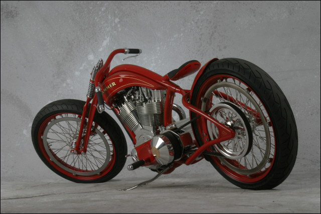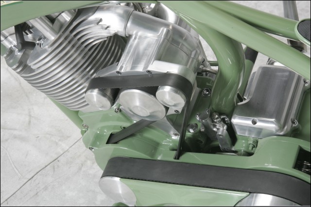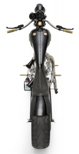 - Здесь снова не обошлось без излюбленного трюка кастомайзера – отрезания переднего цилиндра тюнингованного харлеевского двигателя