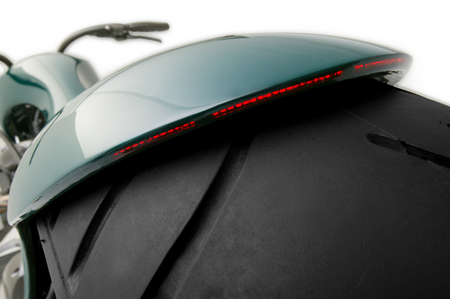 "There's no taillights on that bike," said the befuddled spectator as he examined the rear fender of the green custom bike. His companion, however, begged to differ. He'd seen a clip about that very machine, created by Canadian custom builder Roger Goldammer, on television. Or had he read about it somewhere? He wasn't sure of the source, but he was adamant about one thing: the existence of taillights on the design inspired by a board-track racer.