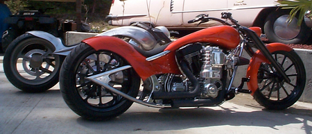 Но что же так поразило судей и коллег Голдаммера в мотоцикле, получившем звонкое имя Goldmember? А то, что и всегда поражает в работах Роджера, - потрясающая технологичность и инновационность. Здесь снова не обошлось без излюбленного трюка кастомаизера - отрезания переднего цилиндра тюнингованного харлеевского двигателя и пересадки на его место заднего. Освободившееся место также традиционно занял чарджер, а вот что касается системы впрыска - тут появилось кое-что новое, а точнее, возможность одним нажатием кнопки оставить всех соперников позади, впрыснув в камеру сгорания немного окисленного азота.Кроме того, для достижения наилучших спортивных результатов Роджер изобрёл и изготовил собственный распредвал и минимизировал возможность ошибки пилота с помощью установки электрического переключателя скоростей.