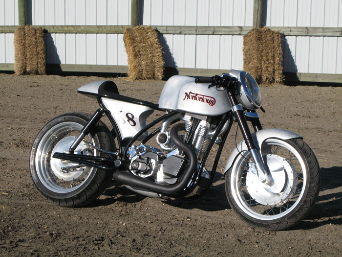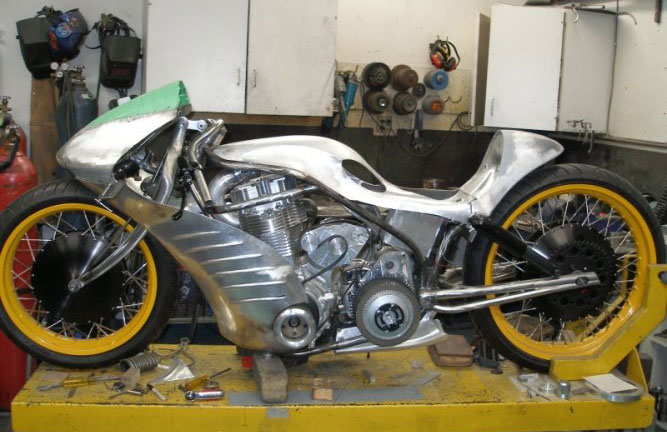 Итак, больше года назад мне посчастливилось побывать в мастерской суперчеловека Роджера Голдаммера. Приехав к нему около часа ночи, я застал дважды чемпиона мира за работой. Он стоял у подъёмника и что-то приваривал к весьма странному мотоциклу, не похожему ни на что виденное мною раньше. Потом был долгий рассказ о новом проекте гоночного кастома, с уникальным турбированным двигателем, инновационной схемой подачи воздуха, создающей единственно правильное давление в системе, с впрыском закиси азота и оригинальными вентилируемыми тормозами. Как человек искренне увлечённый своей работой, он даже повторил всё для глупого русского дважды, но мой воспалённый долгой дорогой мозг воспринял далеко не всё и, отметив необычность проекта и в очередной раз восхитившись инженерным талантом Роджера, я отложил полученную информацию «на потом».