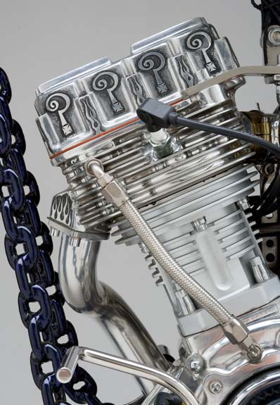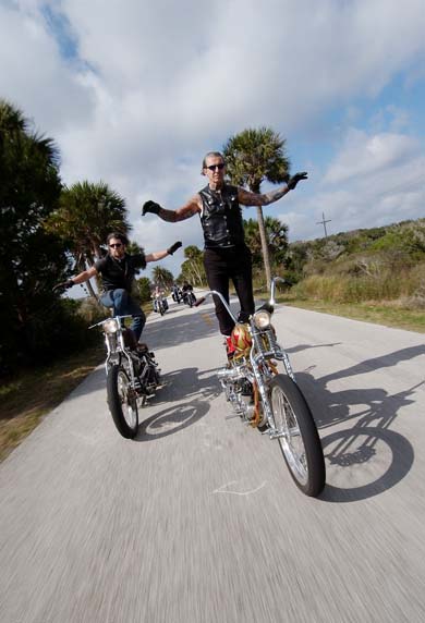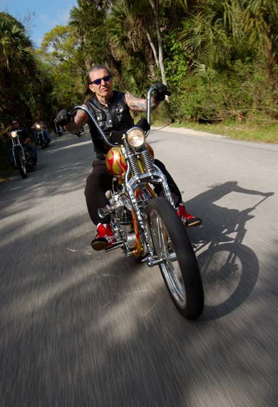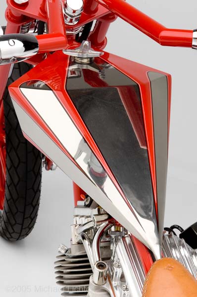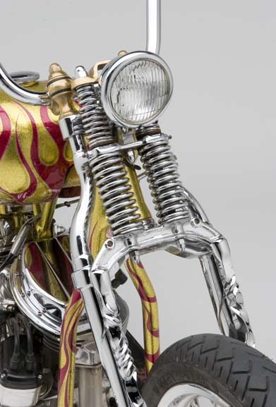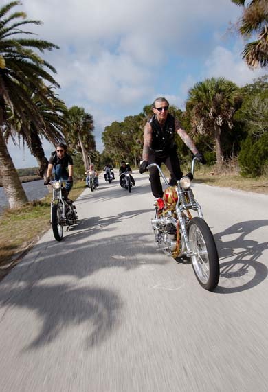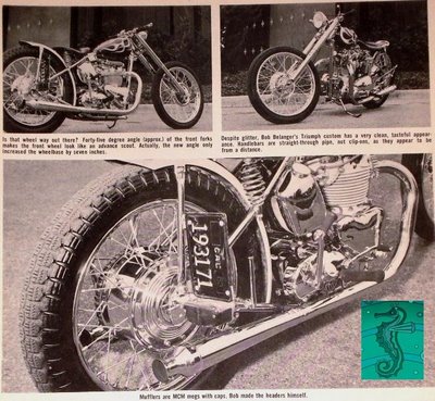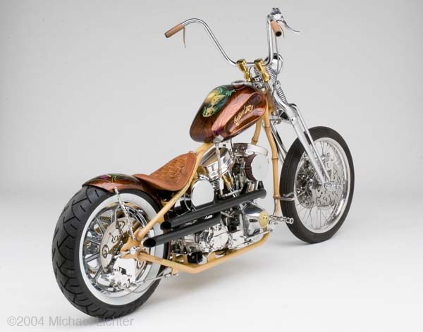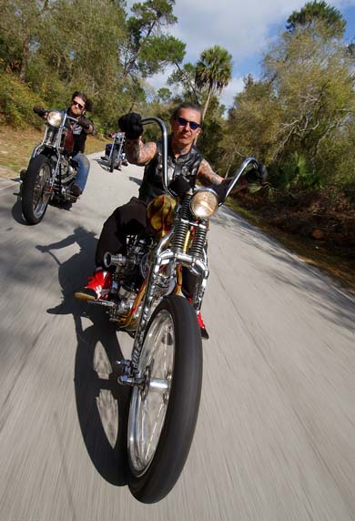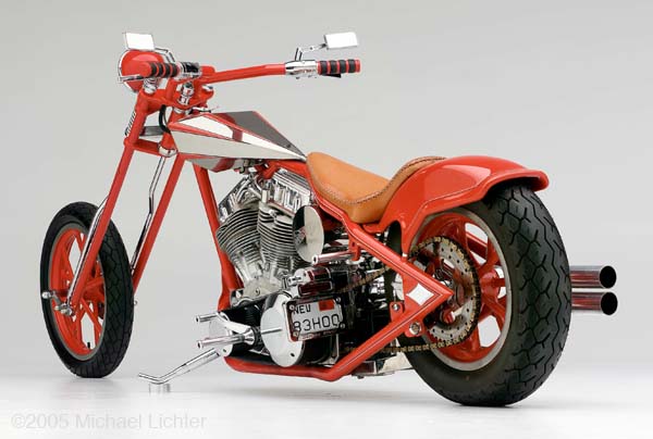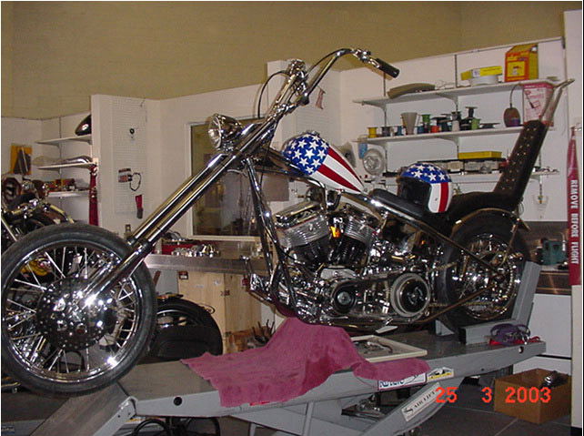 На что Мондо отвечает: "Все очень просто, Денвер Маллинс основал эту мастерскую "Denver's Choppers" в 1967 году в Сан-Бернардино, штат Калифорния - колыбель движения "Запрещенные мотоциклисты". Я был только одним из первых. Здесь размещался первый Capital общества "Ангелы Ада" и здесь же Денвер Маллинс и его команда создавали высокотехнологичные конструкции с удлиненными передними вилками. Мы никого не копировали мы сами были новаторами, сами все это начинали..."