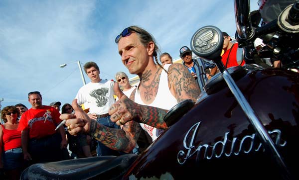 Индеец Ларри (Indian Larry, Lorens DeSmedt; 28 Апреля, 1949 – 30 Августа, 2004), - бог огня и стали, мыслитель старой школы и самоотверженный каскадер, байкер по своему стилю жизни. Он и артист, и преступник, и король потрясающих самоделок, человек - легенда.