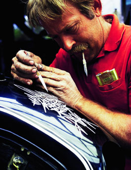 Подростком Кенни был одаренным легкоатлетом, и на университетском стадионе в Комптоне его темп принес ему почетный титул “Самый быстрый человек в Лос-Анджелесе”. А в пятидесятых мастерство, которому он научился у отца, позволило Фон Датчу эксгумировать искусство гравюры на кузове автомобиля. Для украшения серийных машин эта техника не использовалась с тридцатых годов, но в его руках превратилась во что-то более изысканное и экспрессивное. Так родился культ.