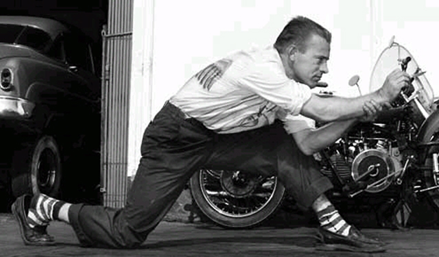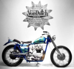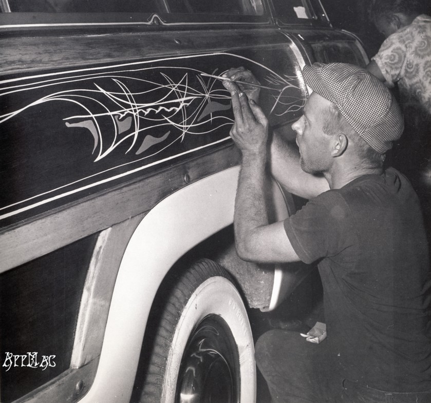 Первые наброски в стиле пинстрипинг были у Von Dutch уже в средней школе Compton – первые мотоциклы и затем другие транспортные средства. Как и многие другие одаренные бунтари, появившиеся в 1940-ых и 1950-ых, талант Von’а питал все тот же жадный аппетит желания освободительного и личного самовыражения, который был в состоянии войны с появляющимся всесильным корпоративным государством, иерархическим, серо-фланелевым индустриальным заказом. Это про него сказано – «один размер соответствует всем». Нравы падали, свобода прибавлялась, но всех пытались причесать под одну гребенку.