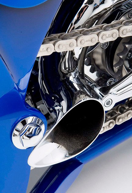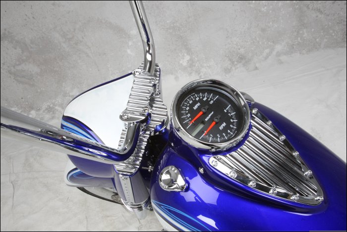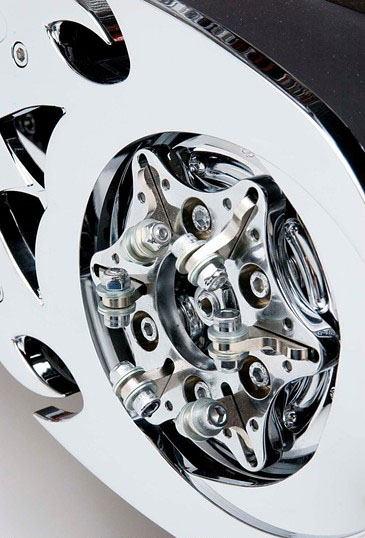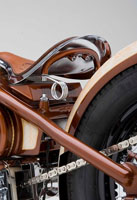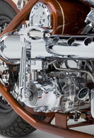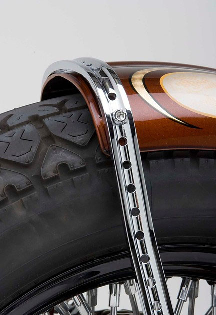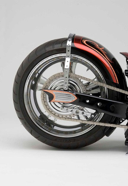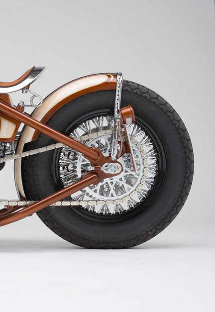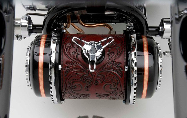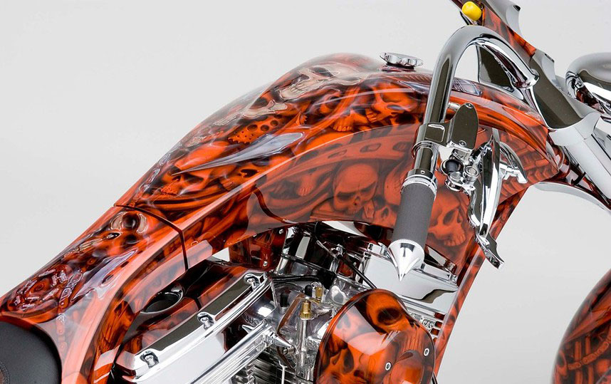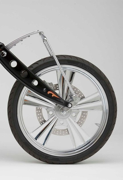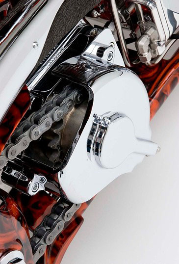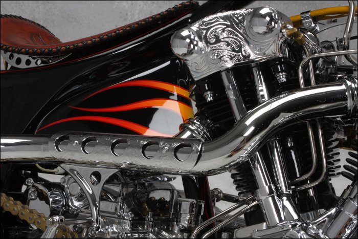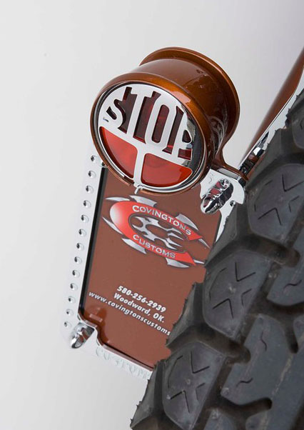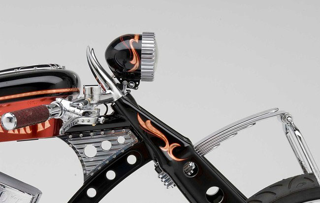 Ковингтон обращает особое внимание на обтекаемую форму кастома. «Мы никогда не установим слишком выступающий бак для бензина в передней части, чтобы мотоцикл выглядел как разбитый или попавший в аварию», – говорит Джерри. «Размещая детали, мы в первую очередь думаем о цельности конструкции». Если он вводит ромбовидную или пиковую тему в какой-то части мотоцикла, она обязательно будет разработана в дальнейшем дизайне. Каждая используемая деталь имеет определённое значение.