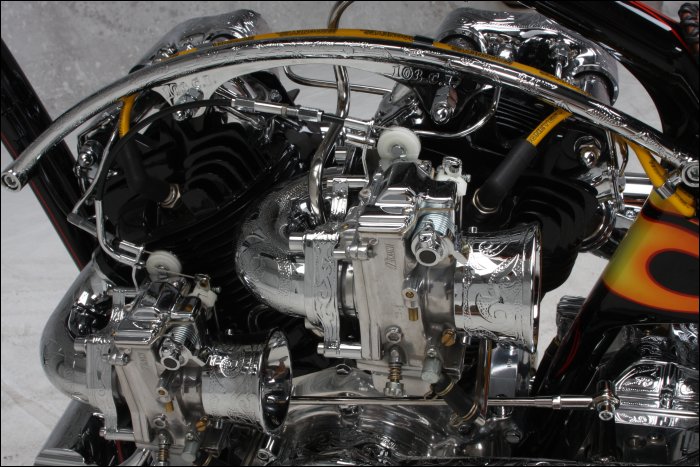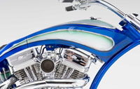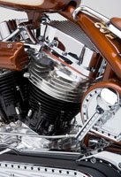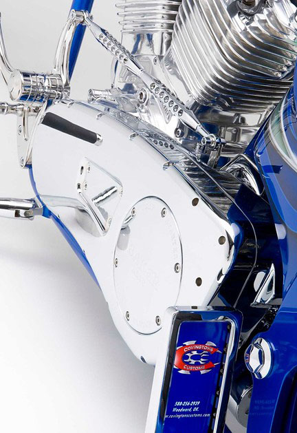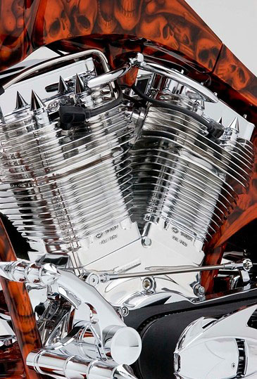 Некоторые мотоциклы Ковингтона имеют двигатель объёмом 120-124". «Если у тебя будет большой, мощный и пригодный для хорошей езды, легко управляемый двигатель, то ты держишь ситуацию под контролем», – говорит Джерри. «Мощность двигателя естественно кажется необходимее, когда ты летишь на большой скорости, но даже когда ты просто плавно скользишь по трассе, это тоже ничего. Думаю, наши движки хорошо служат людям. Всем нужен большой объём, но честно говоря, многие используют только около 80% всей мощности двигателя. Для них важен сам факт наличия мощного мотора. На сегодняшний день двигатель 107" уже не считается «большеобъёмным», все начинается со 117"».