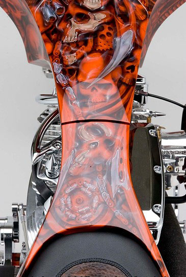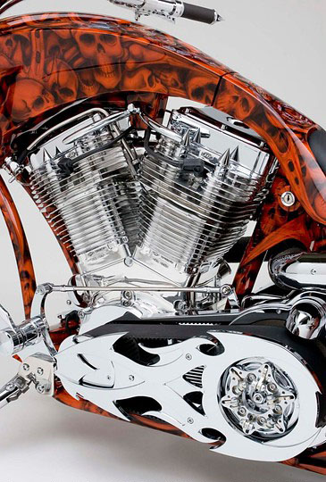 With Skulls custom bike built by Jerry Covington of Covingtons Cycle City, in Woodward, OK, February 18, 2005, photographed by Michael Lichter in Columbus, OH.