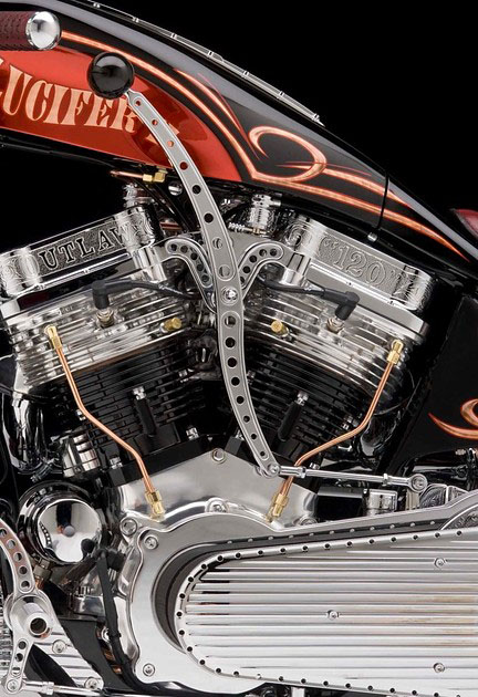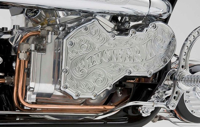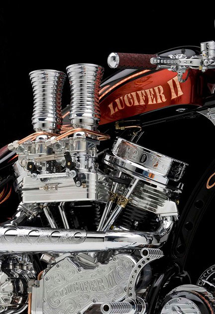 Одним из "любимчиков" Джерри и Дейва стал кастом 2004 года "рождения" с устрашающим именем Lucifer. Отличительными чертами этого золотистого чудища были лаконичность линий и простота форм, старомодный движок с прямотоком и выгравированным профилем Самого на хромированных боковых крышках.