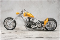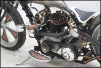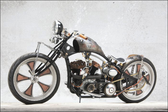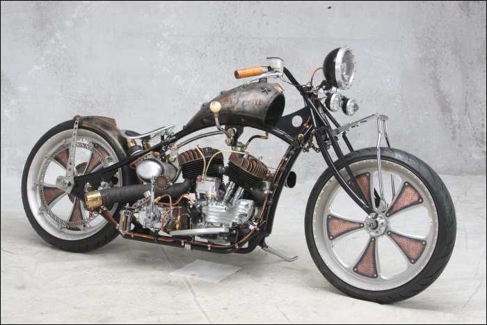 Внимание вниманием, но по итогам чемпионата он не попал даже в 20-ку. Почему? Можно долго рассуждать о точках зрения гуру из жюри, но факт остается фактом – он официально аутсайдер. Что не мешает нам восторгаться оригинальным дизайном и нетрадиционным подходом создателя. Его концепция отличается от общепринятой среди американских чопперостроителей.По железу...