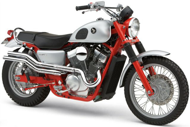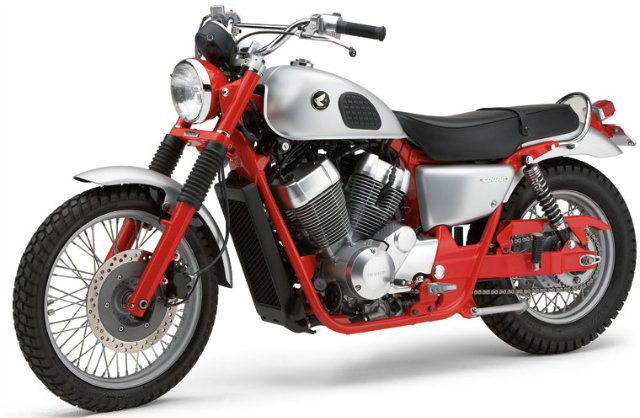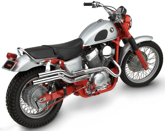 Honda Shadow Scrambler: Мотоцикл является реинкарнацией скрамблеров Honda CL72 (250) и CL77 (305), поэтому не удивляйтесь красной раме, резиновым накладкам на бак и высоко поднятым выхлопным трубам.