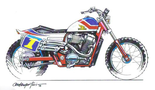 Honda Shadow Dirt Tracker: Байк словно прибыл к нам из середины восьмидесятых, когда Ricky Grahm и Bubba Shobert на "харлеях", переделанных в гаражах забирали победы, одну за другой, в гонках по гаревому покрытию.