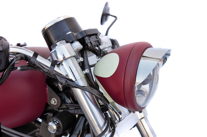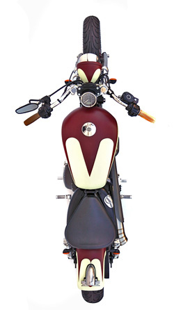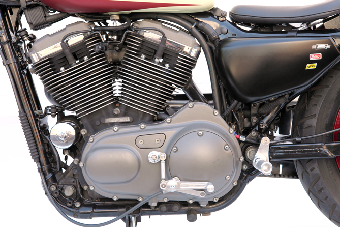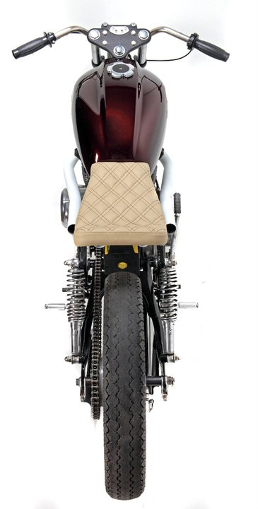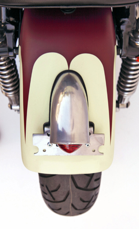 Заднюю часть Хонды он просто убрал, установив новую короткую подвеску, которая опустила всю конструкцию мотоцикла сзади на 175 мм. Топливный бак изменен, вилка вынесена немного вперед, чтобы сделать мотоцикл длинней и придать ему немного стиля классического чоппера, к тому же двигатель оказался посередине между колесами. Эргономика мотоцикла полностью изменена, подножки перемещены назад.