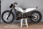 Мотоцикл весит всего 170 кг уже с 12-литрами топлива, и оборудован неслабым двигателем воздушного охлаждения, который выдает 95 л.с. Модные кевраловые и углеводородные вставки завершают картину.