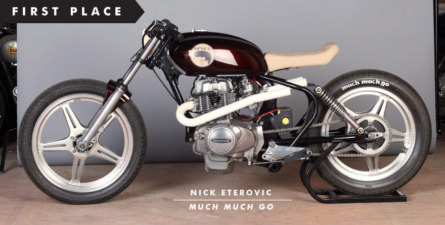 Вот что говорит Nick Eterovic о своей работе: "Для участия в конкурсе друг предложил мне поработать с Honda CB250T 1979 года, хотя это была в основном рама и колеса, затянутые паутиной. Мне понадобилось 55 дней, чтобы построить его, хотя само проектирование мотоцикла не заняло много времени. У меня до этого уже было несколько идей, я хотел, чтобы это было что традиционно японское, но в то же время, я понимал, что не хочу иметь мотоцикл похожий на любой из тех, что я видел раньше".