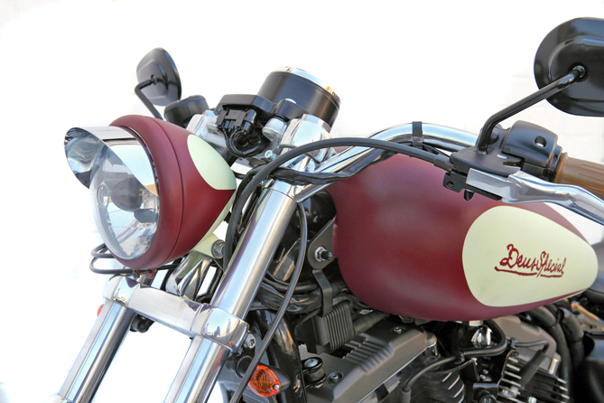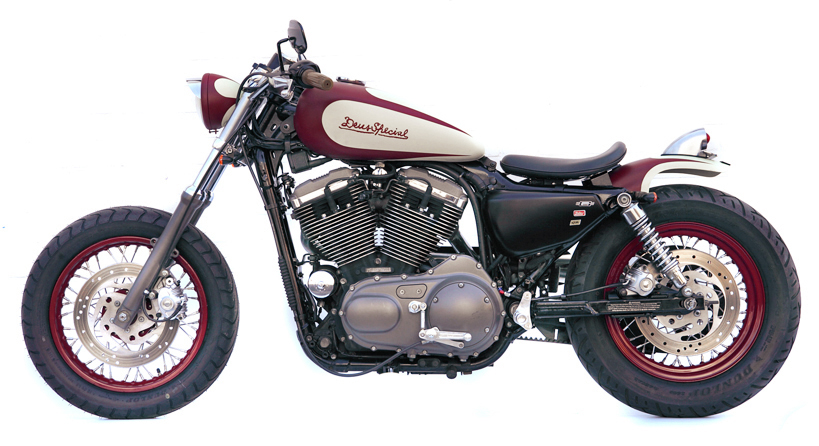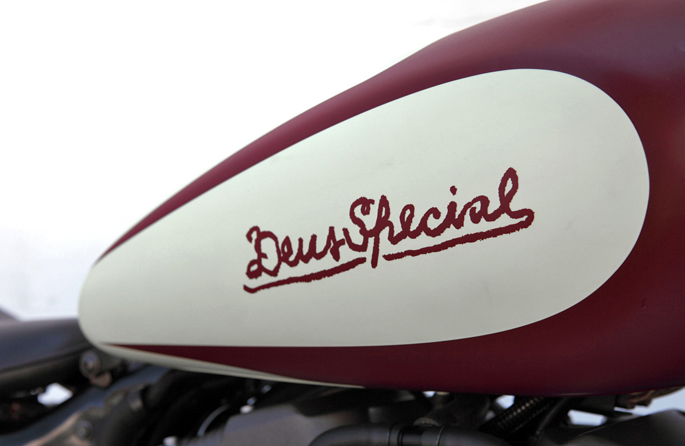 По меркам Deus этот аппарат остался практически стоковым. Список изменений состоит из широких клипонов (а не цельного руля, как это обычно делается в таких кастомах), толстых шин, посаженных на 16-дюймовые диски, одиночного сиденья, измененных тормозных магистралей, выпускной системы ручной сборки, покраски, новой задней оптики и подножек Storz. Стоимость New Blood Sportster составляет $29600 – если Дед Мороз решится на покупку, то кое-кто останется без сладкого.