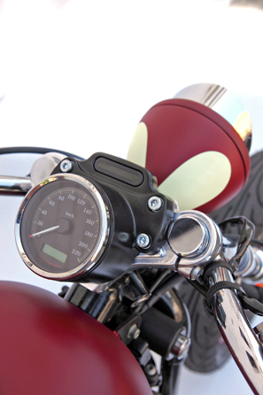 В то время, как мы с нетерпением ждем от итальянцев новых разработок, те неизменно продолжают использовать проверенную платформу с развернутым V-твином путем наращивания объема. Как можно заметить по фотографии, цилиндры двигателя выросли настолько, что они уже буквально впиваются в топливный бак мотоцикла. Впрочем, это проблема встает перед всеми компаниями, кто продолжает наращивать объемы V-образных двухцилиндровых двигателей (H-D, Excelsior-Henderson), и каждый с этим борется по-разному.