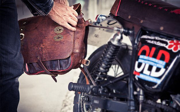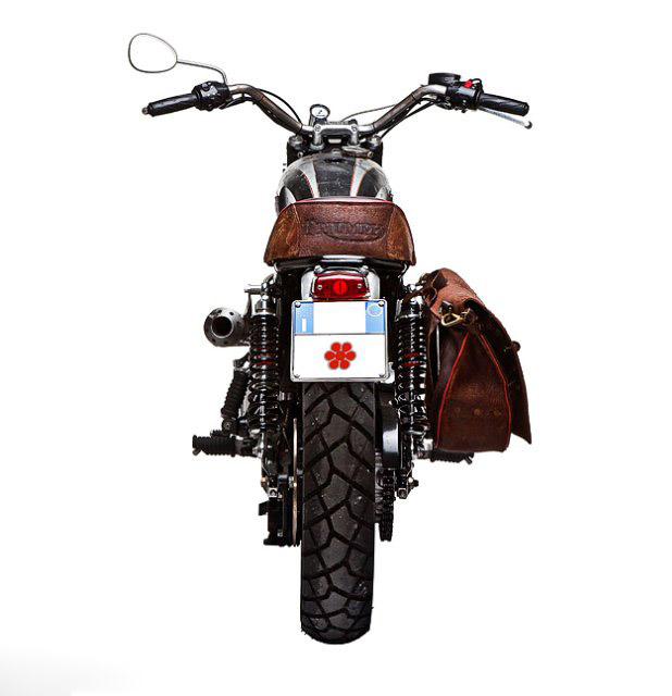 Роберто Росси модифицировал стоковую раму Bonneville T100, чтобы установить топливный бак от старого мотоцикла той же марки Triumph. Очень интересно Роберто Росси придумал с сумкой с правой стороны. В любой момент сумку можно снять.